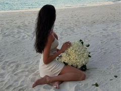 Предложение было сделано на Мальдивах. Кольцо — с неприлично большим бриллиантом. Имя будущего мужа держится в строжайшей тайне.