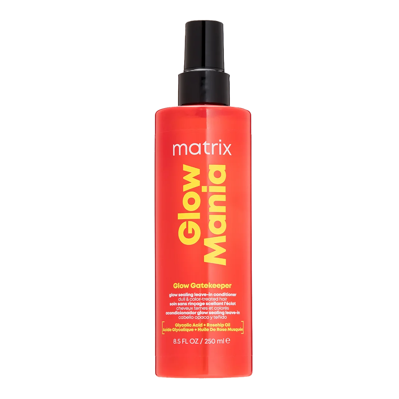 Мы обожаем несмываемые продукты для волос, поэтому из новой линейки Matrix сразу выделили такой кондиционер-спрей Glow Mania. Его основная задача — поддерживать яркость цвета и насыщенный блеск окрашенных или потерявших сияние волос. Формула защищает локоны от ежедневного стресса, включая укладку горячими стайлерами, и помогает бороться с пушистостью в условиях высокой влажности. В формуле этой новинке есть гликолевая кислота, которая благодаря маленькому размеру молекул проникает внутрь волоса, и масло шиповника, богатое витамином С, которое «запечатывает» кутикулу. Поэтому средство облегчает укладку, защищает от пушистости и отлично выдерживает нагрев до 230°C. Но для максимального эффекта все же рекомендуем использовать всю систему: бессульфатный шампунь, кондиционер, маску и финальный спрей.