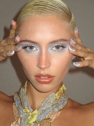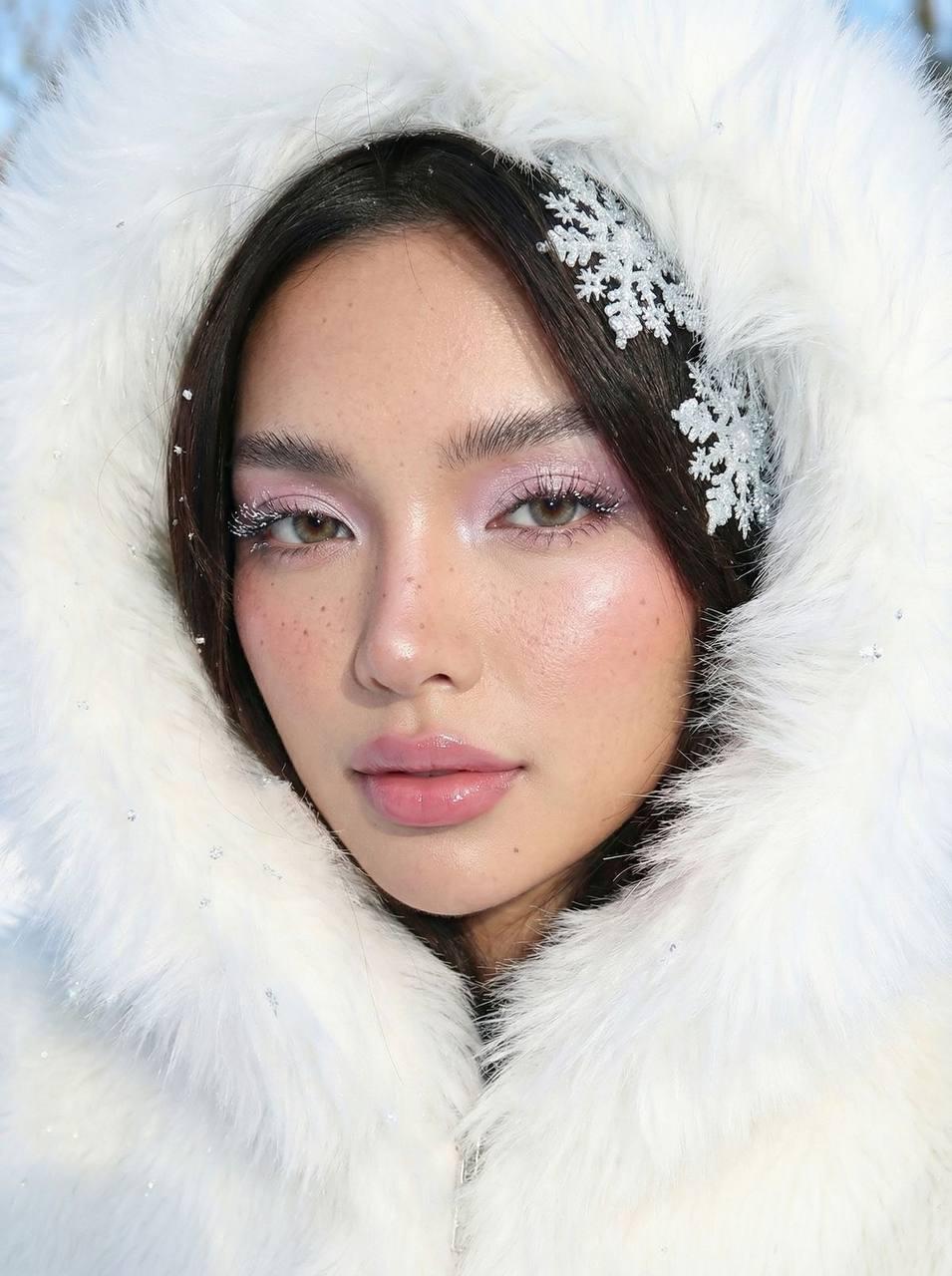 Первый вариант — холодное, ледяное сияние. Денежный макияж в белых, серебристых и голубоватых тонах считается таким не просто так. Эти цвета напоминают о самом дорогом — о чистом снеге, первом инее, о бриллиантах и серебре. Они выглядят дорого именно потому, что требуют безупречной кожи и аккуратности. Такой макияж строится на белых, светло-серых и голубых тенях и может дополняться любыми акцентами. Но мы предлагаем сделать выразительными внешние уголки глаз, добавив туда выбранный оттенок, а внутренние уголки и область под бровью осветлите хайлайтером. Получится свежий, как зимнее утро, и очень чистый взгляд. Губы оставьте нейтральными.