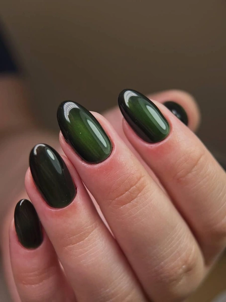 Бархатные ногти с эффектом «кошачий глаз» обладают невероятной силой притяжения. Глубокий цвет со светоотражающими частичками напоминает о том, что истинная энергия денег — в умении мягко, но уверенно фокусироваться на цели. Денежный маникюр на декабрь 2025 с таким покрытием помогает настроиться не на суетливый поиск возможностей, а на их естественное притяжение.