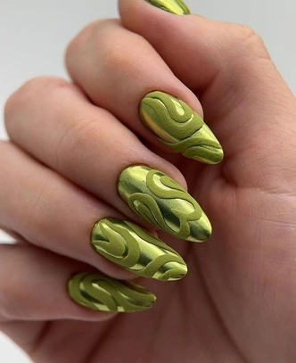 Такой дизайн ногтей мастера создают при помощи цветной основы, добавляя рельефные элементы — стразы, линии или капли. Каждый слой в такой композиции становится метафорой финансового разнообразия, когда доход формируется из нескольких источников одновременно. Денежный маникюр на декабрь 2025 в объемном исполнении помогает настроиться на восприятие изобилия как естественного состояния.