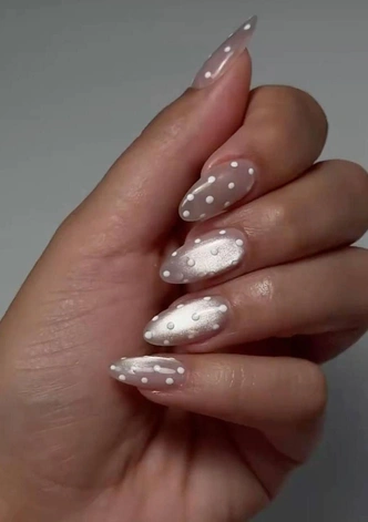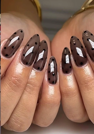 Горошек в дизайне ногтей всегда вызывает ассоциации с движением и позитивным настроем. Узор из точек визуально собирает энергию, словно множество небольших, но стабильных финансовых поступлений. Золотые или серебряные точки напоминают драгоценные монеты, а черные и белые создают графичный контраст, символизирующий баланс между доходами и расходами. Так что денежный маникюр на декабрь 2025 в горошек поможет вам с легкостью настроиться на изобилие.