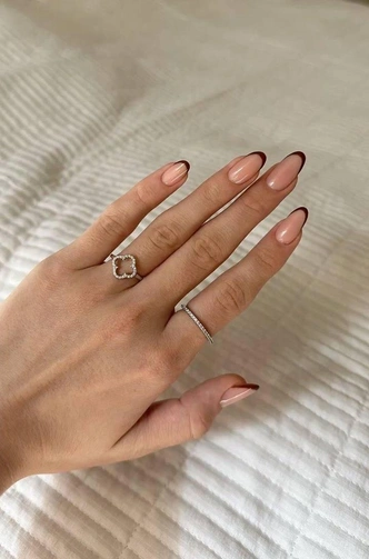 Это свежий взгляд на классику, который идеально впишется в концепцию денежного маникюра на январь 2026. Вместо традиционного белого можно использовать любой из модных цветов года, например, сочный алый или глубокий винный. Такое решение позволит вам сохранить элегантность «улыбки», но при этом сделать более модный и осмысленный дизайн. К тому же денежный маникюр во французской технике позволяет визуально удлинить ногтевую пластину и добавить образу аккуратности. Если выбрать оттенок, связанный с благополучием, например, уютный коричневый или энергичный чили, то каждый взгляд на руки будет мягко напоминать о финансовых целях. В год Огненной Лошади, ценящей стиль и смелость, такой нейл-арт станет отличным символом баланса между элегантностью и намерением.