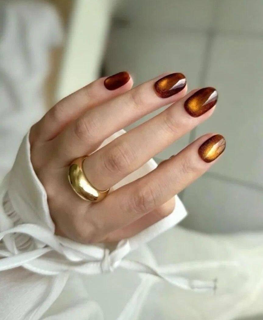 И, наконец, классика, которая никогда не подводит — глубокие коричневые тона: Bronze Brown и Hot Chocolate. Денежный маникюр на январь 2026 в такой теплой, землистой палитре — это выбор в пользу стабильности, комфорта и надежности. Эти цвета ассоциируются с почвой, фундаментом и материальным достатком. Они помогают настроиться на практичность, терпение и реализацию долгосрочных целей, что является отличной основой для финансового успеха в любом году, а в 2026-м — тем более.