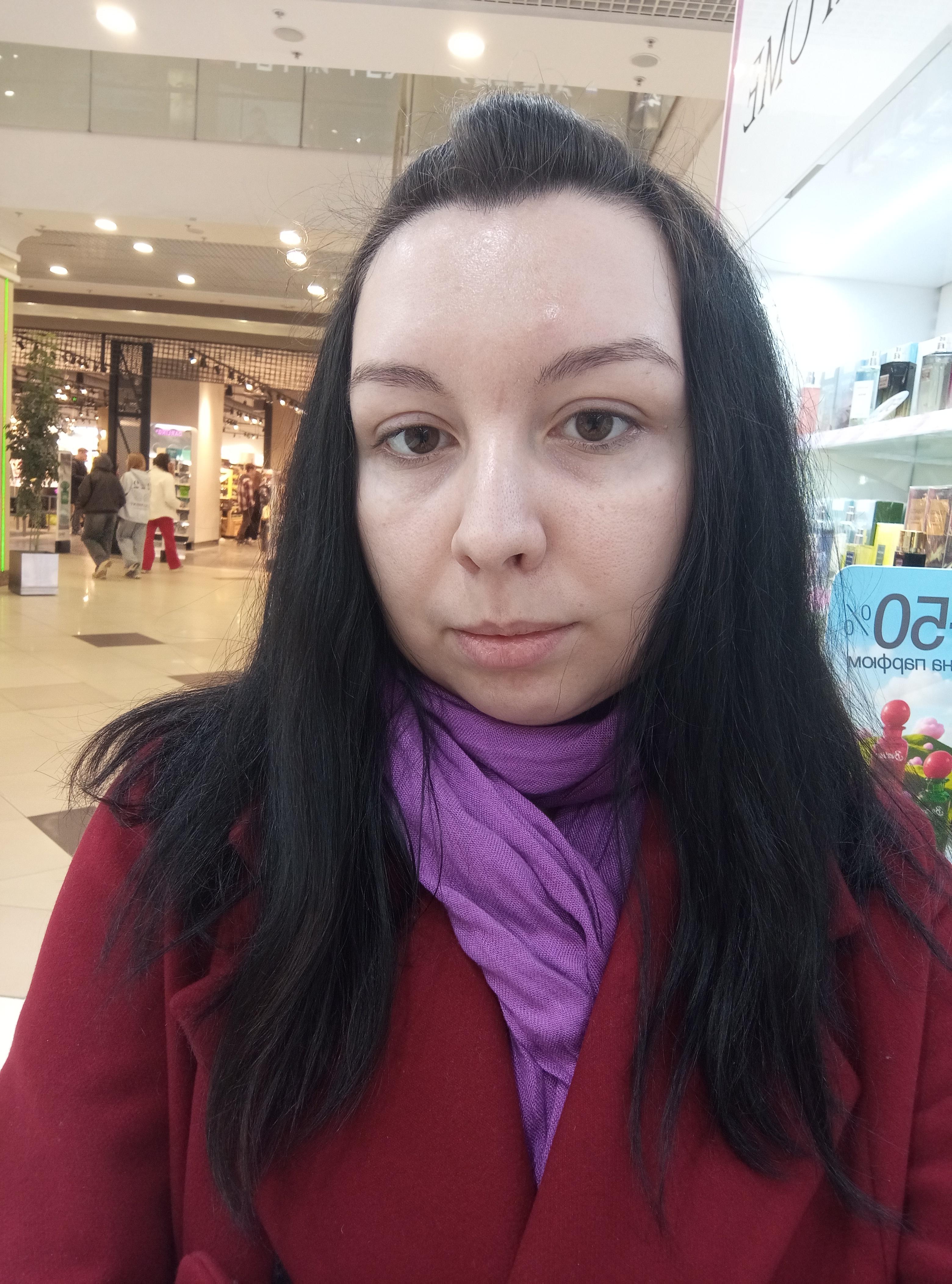Нормальное лицо, чуть мейка, лиловый шарф в топку, и не прятать его под пальто, а красиво сверху