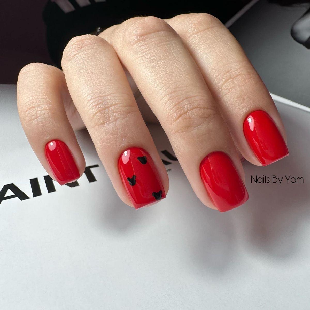 Яркий, но в то же время ненавязчивый контраст, который не требует объяснений. Красный и черный — как страсть и загадка, день и ночь, буря эмоций и абсолютное спокойствие. Мастера маникюра советуют попробовать еле уловимые принты: тонкие узоры, минималистичные точки, графичные линии.