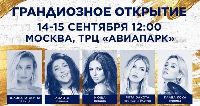 В эти выходные в «Авиапарке» появятся Полина Гагарина, Рита Дакота, Нюша, Влад Соколовский, Лолита и Клава Кока. Вместе со звездным визажистом марки Maybelline NY Юрием Столяровым они проведут для всех желающих собственные бьюти-уроки.