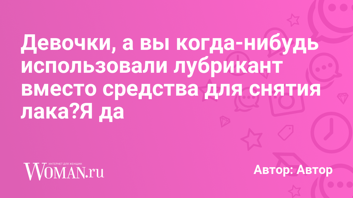 Вчера вечером. Ногти облезли в хлам. Дома ни лака ни ацетона. Зато на тумбочке стоит флакон смазки на водной основе. Остался с прошлого раза и вкусно пах клубникой. Я думаю ну вода же. Плюс спирт там наверняка есть. Мазанула ватный диск. И да лак снялся на ура. Пальцы потом ещё час скользкие были, но ногти чистые. Сижу и ржу. Потому что это одновременно гениально и мерзко. Муж пришёл не понял чем таким сладким пахнет. Я говорю «Ногти красотой дышат». Короче, вопрос, кто ещё использовал интимные штуки в бытовых целях?