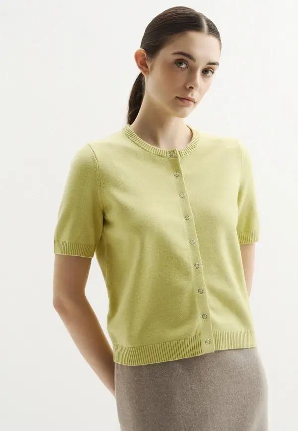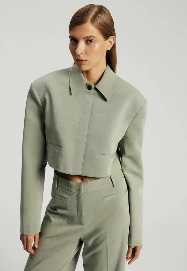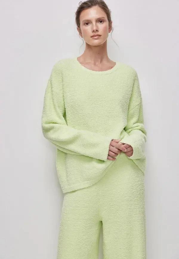 Самым беспроигрышным вариантом стал трикотаж. Фисташковый цвет будто создан для объемных свитеров, кардиганов и мягких жакетов. Например, Gucci представил роскошный кардиган оверсайз, украшенный бисером, а Chanel — элегантный пастельный свитер, который отлично смотрелся в паре с жемчугом. И тепло, и красиво, и нежно — чем не идеальная база для зимнего аутфита?