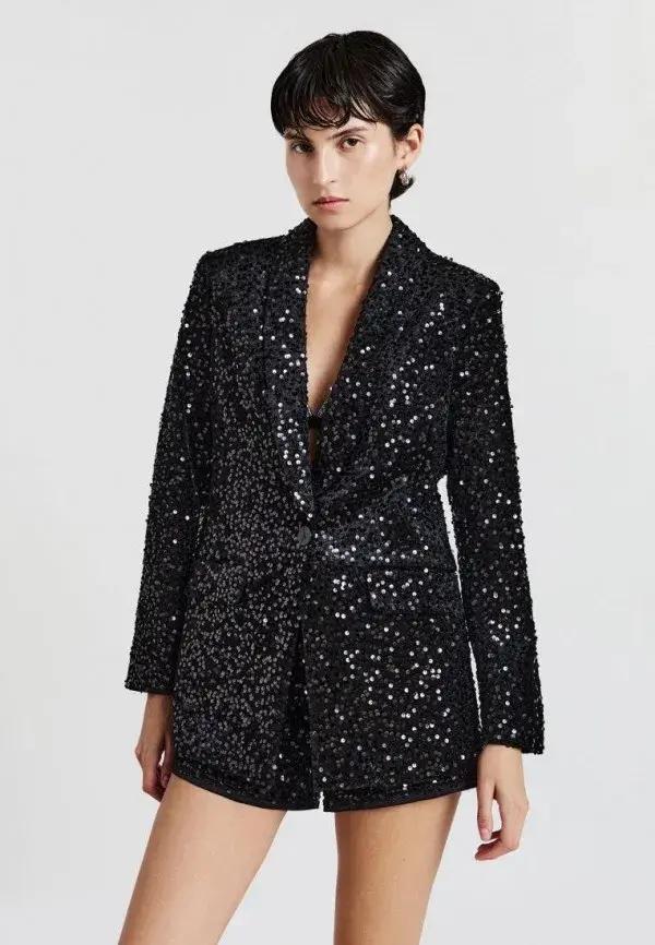 Так что даже если покупка от кутюр не входит в ваши планы, отбрасывать этот вариант мы не советуем. Сегодня у многих брендов можно найти доступные и такие же роскошные наряды с пайетками на любой вкус. Ведь чтобы выглядеть уместно и современно, достаточно сбалансировать блеск простыми деталями. Короткое платье можно надеть с плотным строгим жакетом, а блестящую юбку — с минималистичным лонгсливом, блузой, кардиганом или объемным свитером.