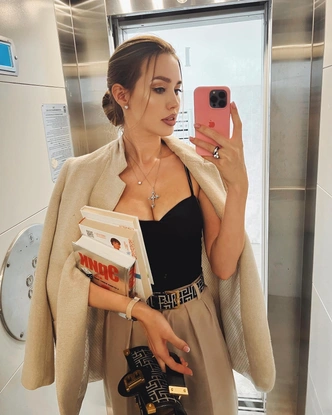 «Если смотреть образы Костенко с 2021 по 2025 год, то отличий между ними особых нет. Есть неплохие, стильные варианты в 2021, 2022 и 2025 годах, но они единичны. Например, красное платье на отдыхе с актуальными на тот момент босоножками, бежевый костюм с сумкой и ремнем Balmain и в этом году — платье макси с трендовой бахромой и гармоничным пиджаком и сумкой Chanel, которую, кстати Анастасия регулярно носит уже боле пяти лет. Это, пожалуй, все».