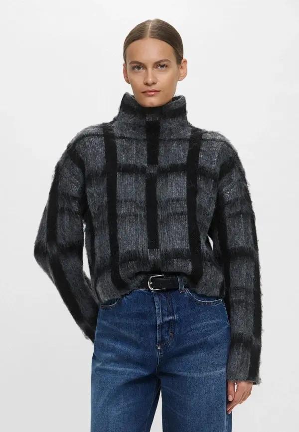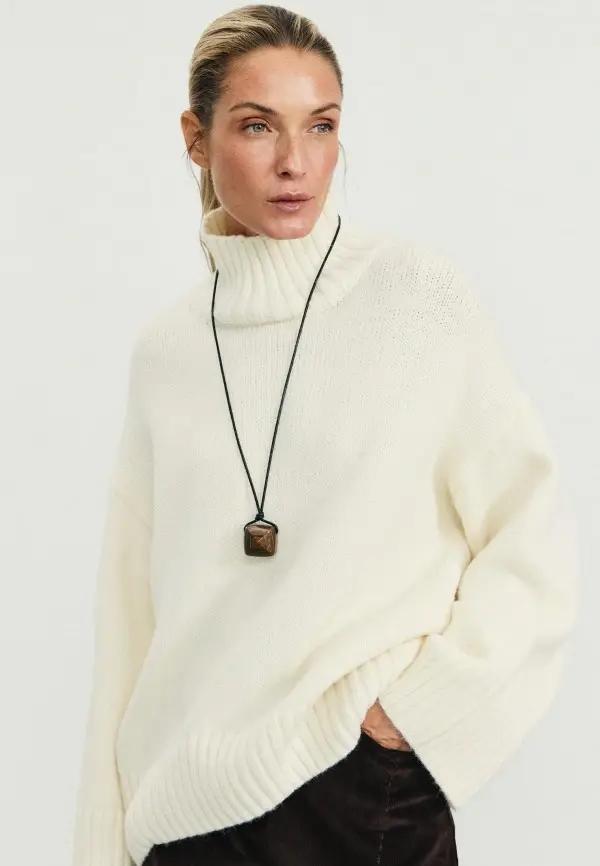 Что касается свитеров, то здесь действует простое правило: чем тоньше платье, тем объемнее может быть свитер. Модели оверсайз с широкой горловиной, которые слегка сползают на одно плечо, смотрятся особенно интересно. Также хорошо работают свитера с высоким воротником, если платье имеет глубокий вырез. Впрочем, в качестве верхнего слоя подойдут и фактурные свитера с рельефными узорами, тонкие кашемировые модели или даже простые водолазки.
