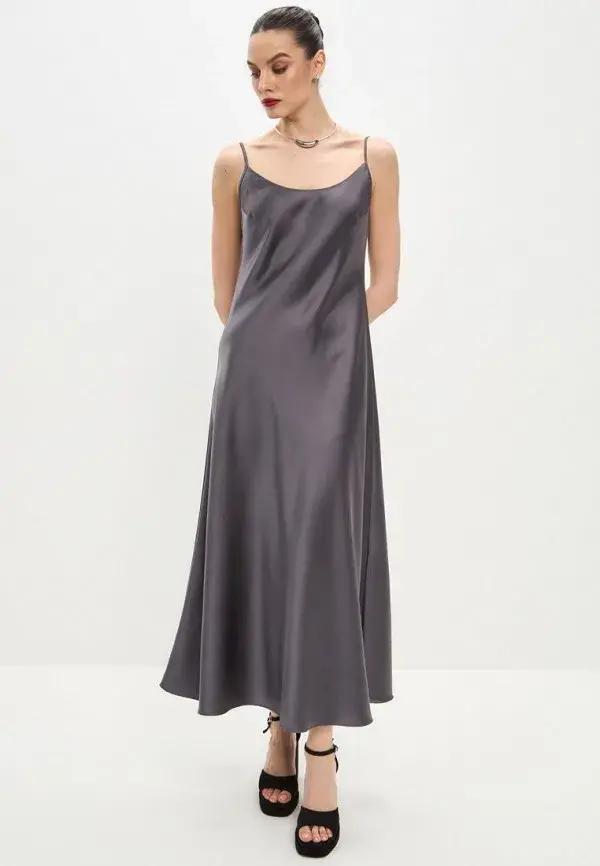 Для создания стильного ансамбля лучше всего подходят платья свободного кроя из струящихся тканей. Шелк, сатин, шифон или тонкий хлопок — эти материалы не добавляют лишнего объема под свитером. Платье-комбинация, модель с запахом или простое платье-футляр станут отличной основой. А вот слишком пышные или плотные модели вряд ли подойдут, поскольку вероятнее всего будут создавать ненужный объем и визуально увеличивать фигуру.
