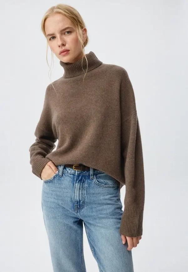 Цветовые сочетания могут быть самыми разными. Нейтральные тона вроде бежевого, серого, коричневого и черного — самый беспроигрышный вариант. Для тех, кто хочет добавить яркости, можно попробовать сочетание пастельного свитера с платьем насыщенного оттенка или наоборот. Интересно смотрятся и монохромные ансамбли, когда все элементы образа выдержаны в одной цветовой гамме, но разных фактур.