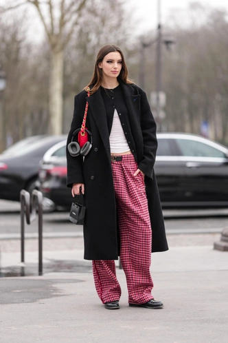Чтобы создать образ в стиле преппи, который остается в тренде уже несколько сезонов подряд, наденьте клетчатые брюки с рубашкой, жилеткой и лоферами. Этот ансамбль смотрится интеллигентно и немного по-английски. Или берите классические красные клетчатые брюки прямого кроя и смягчайте их дерзкий дух строгим черным блейзером. А для баланса можно добавить грубые ботинки Dr. Martens, которые отсылают нас к гранжевой эстетике 90-х.