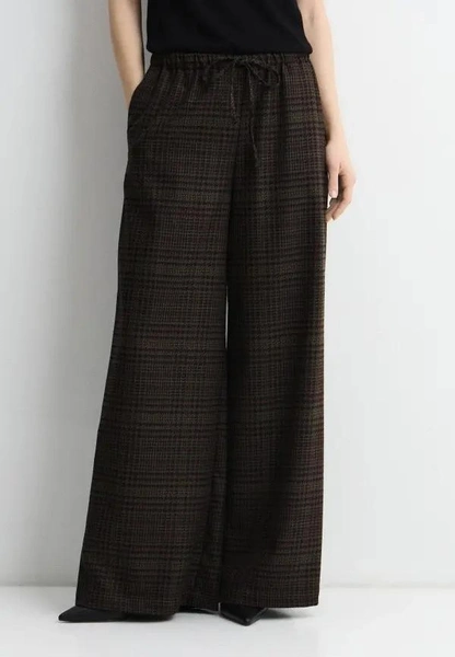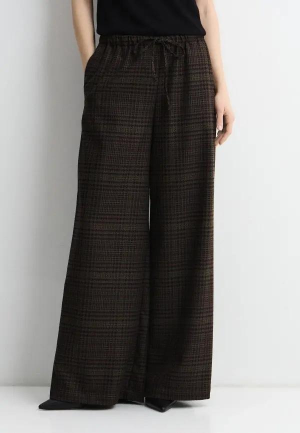 И, наконец, самый уютный вариант — для домашнего вечера или отдыха за городом. Свободные клетчатые брюки из мягкой шерсти или фланели станут идеальной парой для большого вязаного кардигана, простой футболки, грубых ботинок и теплых аксессуаров вроде объемных носков и шарфа. Этот образ — воплощение зимнего комфорта и стиля.