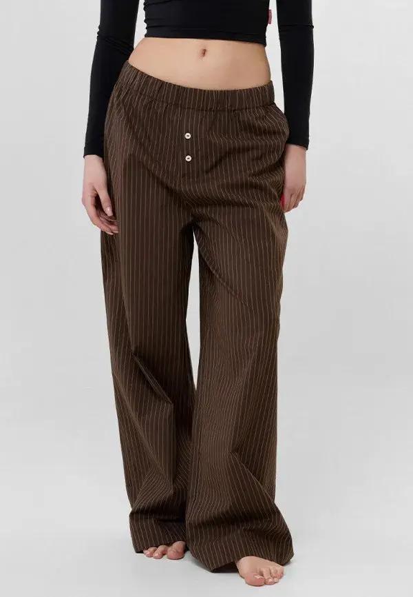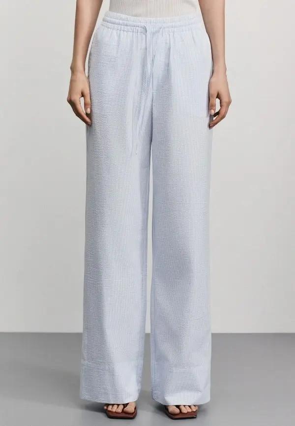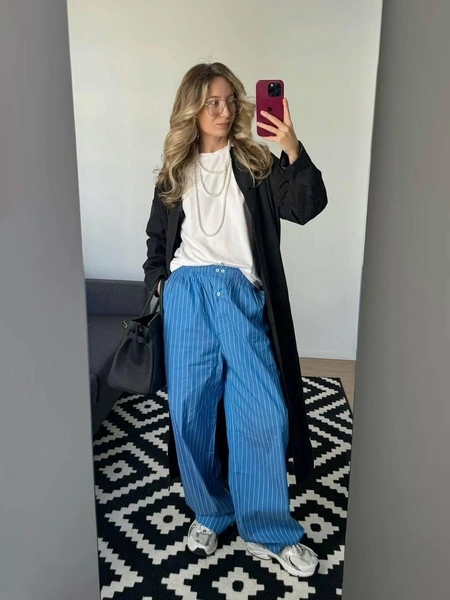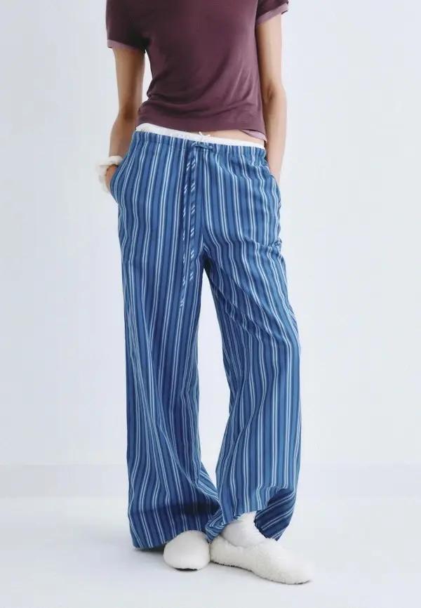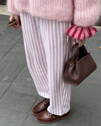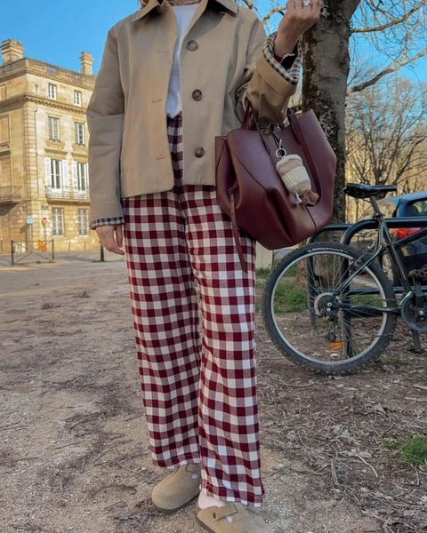 Не стоит бояться и сочетаний с акцентными аксессуарами. Пижамные брюки прекрасно смотрятся с крупными золотыми серьгами, кружевными косынками, которые все еще можно повязывать на талии, очками в геометричной оправе и структурными, немного грубоватыми сумками. Эти детали создают ощущение продуманности и превращают «домашнюю» вещь в часть модного городского лука.