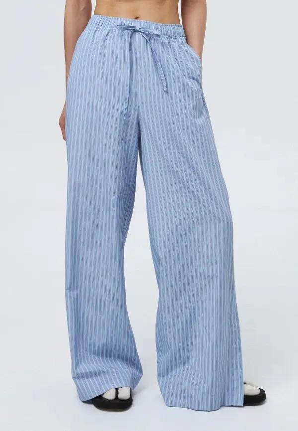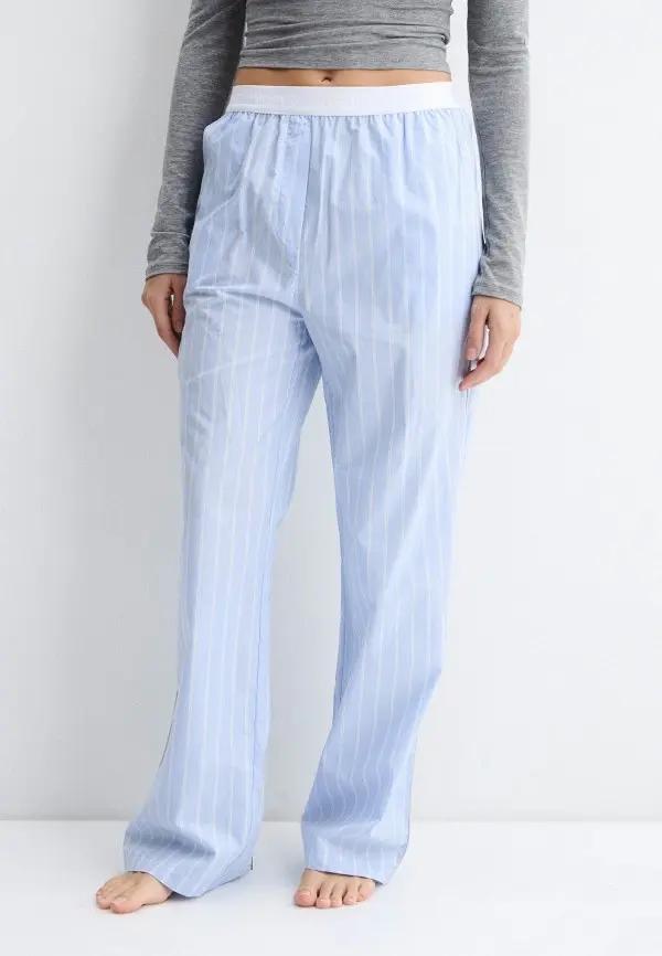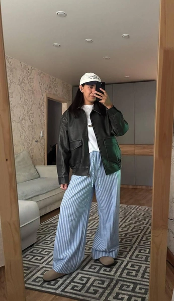 Тем, кто предпочитает комфорт в чистом виде, понравятся комбинации с худи, трикотажными свитшотами и спортивными куртками. Такой микс особенно хорошо смотрится в светлых оттенках: сером, молочном, бежевом, небесно-голубом или лавандовом. А если хочется яркости, выбирайте пижамные брюки с принтом — полоску, цветы или крупную клетку — и уравновесьте их однотонным верхом.