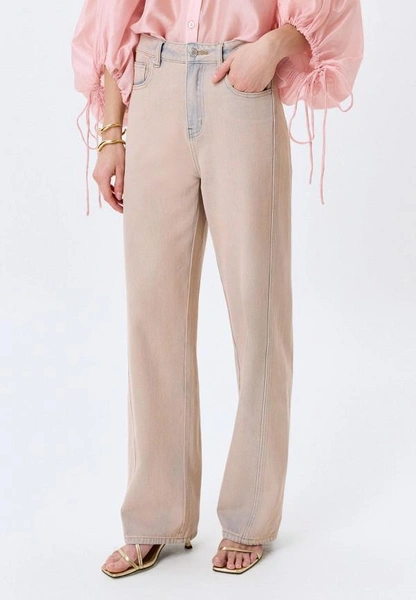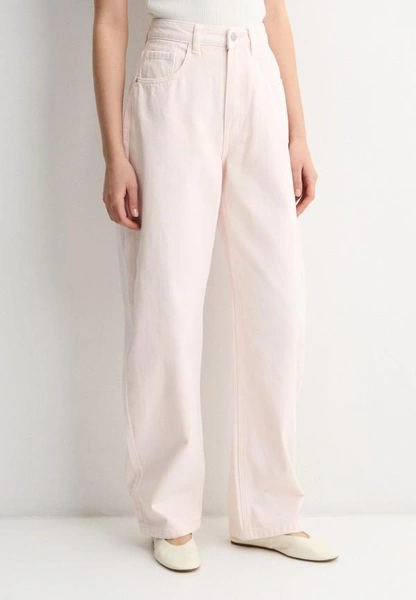 Кроме того, нежно-розовый способен преобразить ваш образ, придав ему мягкости и романтичности. Плотная джинсовая ткань делает этот оттенок чуть более приглушенным, почти припыленным, что позволяет носить такие джинсы не только на прогулки, но и в офис с демократичным дресс-кодом. Добавьте к ним лаконичные аксессуары вроде лоферов или кед, небольшую сумку и минимум украшений — получится современный городской образ без намека на чрезмерную кокетливость.