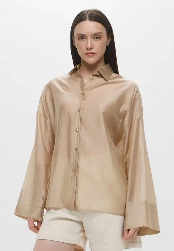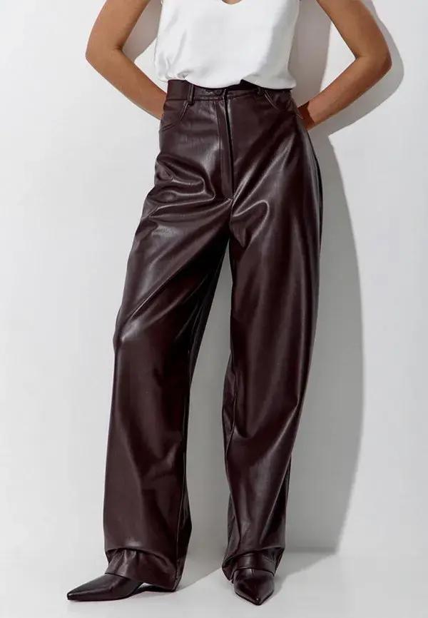 Туго застегнутые приталенные блузы и прямые брюки идеально вписываются в эстетику «офисной сирены» или делового дресс-кода, но никак не подходят для новогодней ночи. На смену этому строгому дуэту пришел более романтичный и свободный стиль. Например, это могут быть блузы с пышными рукавами «фонарик», изящным жабо, воланами или воротником-стойкой. И сочетают их не с обтягивающими брюками, а с широкими, струящимися моделями из атласа или кожи. За счет такого микса получается красивый и визуально дорогой образ в эстетике расслабленного бохо-шика. Элегантно, комфортно и уместно потом в любое время года.