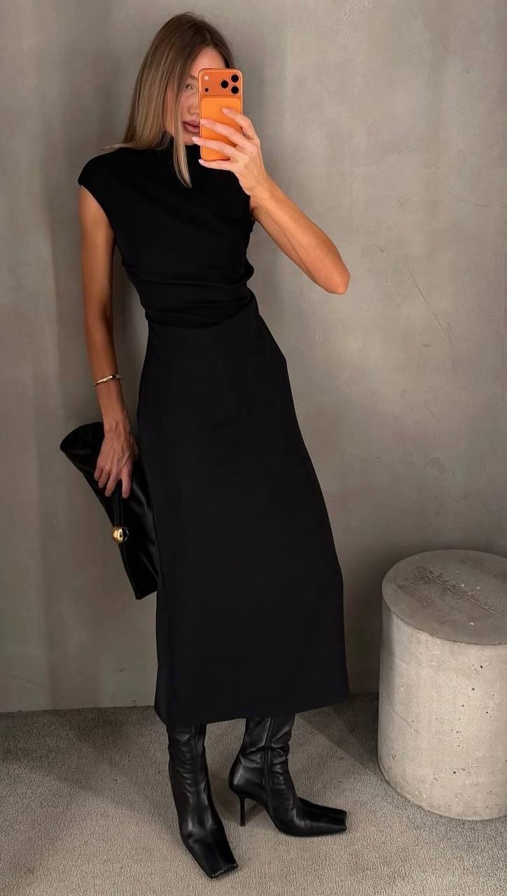 Полностью черный образ — классика, которая, казалось бы, никогда не подведет. Но символ 2026 года, Огненная Лошадь, благоволит к теплу и энергии, а черный цвет может погасить это праздничное пламя. Это не значит, что от черного нужно отказаться совсем — просто используйте его с умом. Пусть он станет не основой, а изящным акцентом. Например, дополните лаконичное платье черным меховым шарфом, которые сейчас в тренде, или выберите элегантные черные босоножки на каблуке. А вот основную палитру образа составьте из насыщенных, «живых» оттенков: глубокого бордо, терракоты, приглушенного золота или изумрудного. Это создаст необходимый контраст и покажет, что вы в тренде.