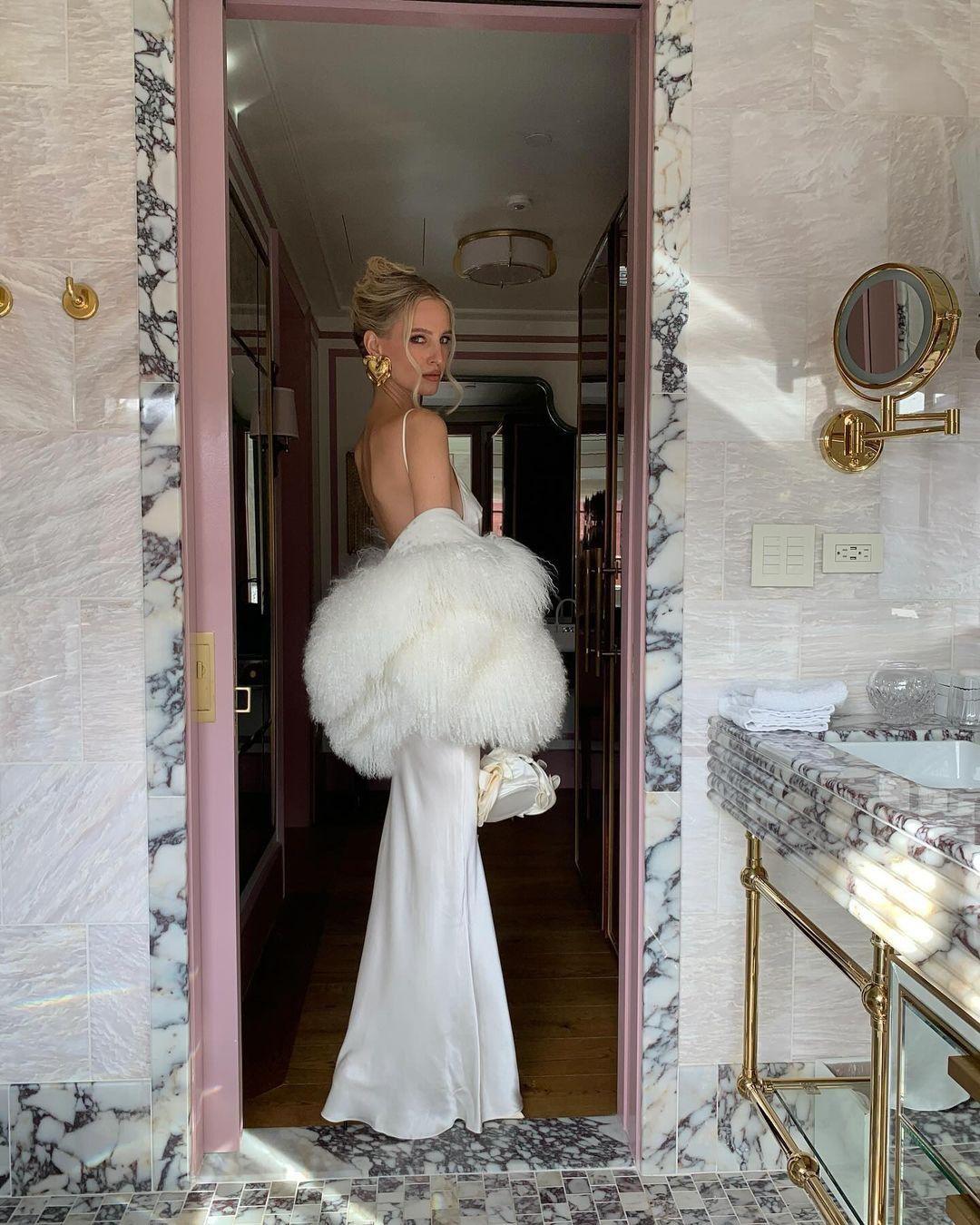 Первым делом учтите погодные условия: наряд невесты зимой это не только платье. Зимняя погода дает простор для выбора верхней одежды, поэтому это может быть шуба-йети, оверсайз-пальто, бомбер, дубленка или удлиненный асимметричный теплый жилет. Обувь тоже выбирайте строго по погоде. Например, сапоги, утепленные туфли или босоножки с мехом не только практичны, но и выглядят куда эффектнее легкой обуви зимой.