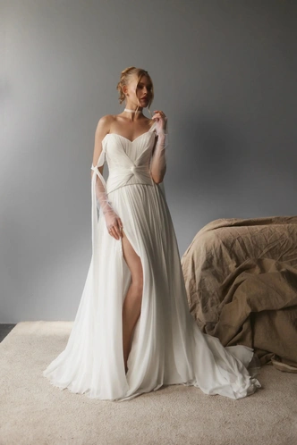 Весь образ обязателен к примерке полностью и лучше всего это сделать в салоне. Например, вы можете выбрать несколько моделей заранее, а ваш персональный консультант подготовит их к вашему приходу и сделает все, чтобы найти «то самое» платье.