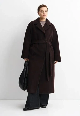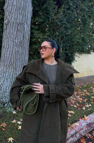 Ищите длину хотя бы до середины икры: она добавляет роста и собирает фигуру в одну вертикаль. Самый удобный вариант — однобортное или без лишнего объема на груди, с четкой линией плеча и нормальным запасом под слой из трикотажа. Пояс хорош, когда талия выражена и вам комфортно ее отмечать. Если талия не яркая, пусть пальто держит форму само по себе, без тугого перетягивания.