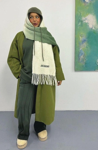 Длинный шарф и одно крупное украшение как управляемые акценты