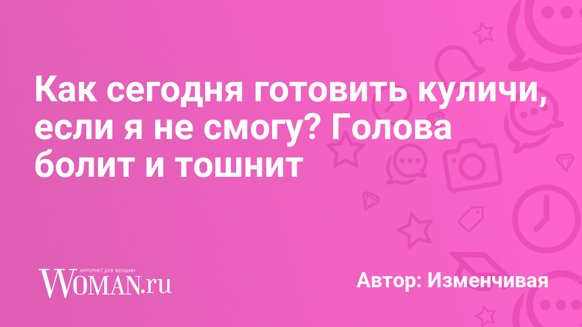 Как сегодня готовить куличи, если я не смогу? Голова болит и тошнит. Не хочу объяснять родным причину, чтобы они не подумали, что я вчера пила алкоголь.