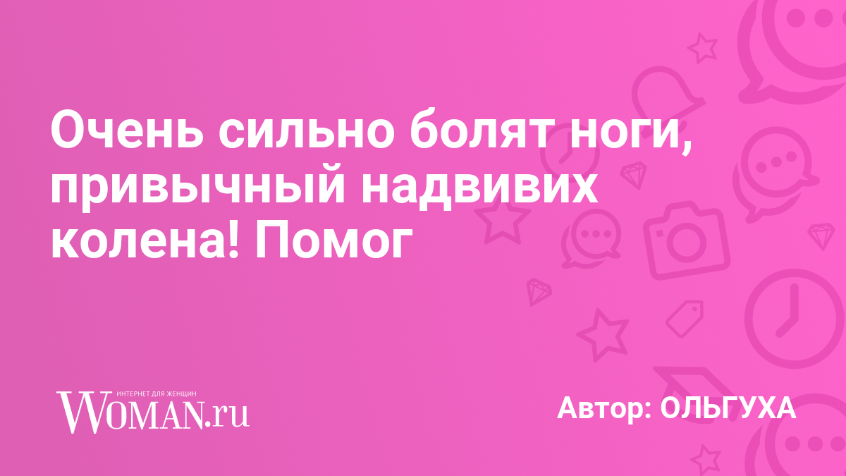 Доброе время суток! Подскажите пожалуйста чем спасаетесь? У меня очень сильно болят ноги и отекают, боли режущие-ноющие-нестерпимо буквально реву порою. Работаю учителем, нагрузка есть. Два раза были подвывих колена. Делала УВТ, ставила укол флексотрон, лазер на колено, постоянно ношу ортез.. Какие можно сделать упражнения, пить лекарства, массажёр? У врачей была, кучу денег оставила-толк есть, но эти боли словно в ноги вонзают ножи.. Ещё этот постоянный страх, что вылетит колено опять меня изводит..