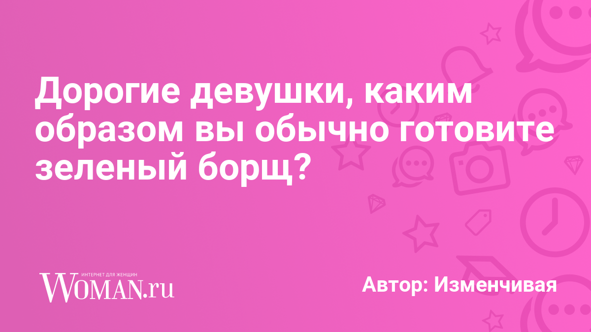 Дорогие девушки, каким образом вы обычно готовите зеленый борщ?