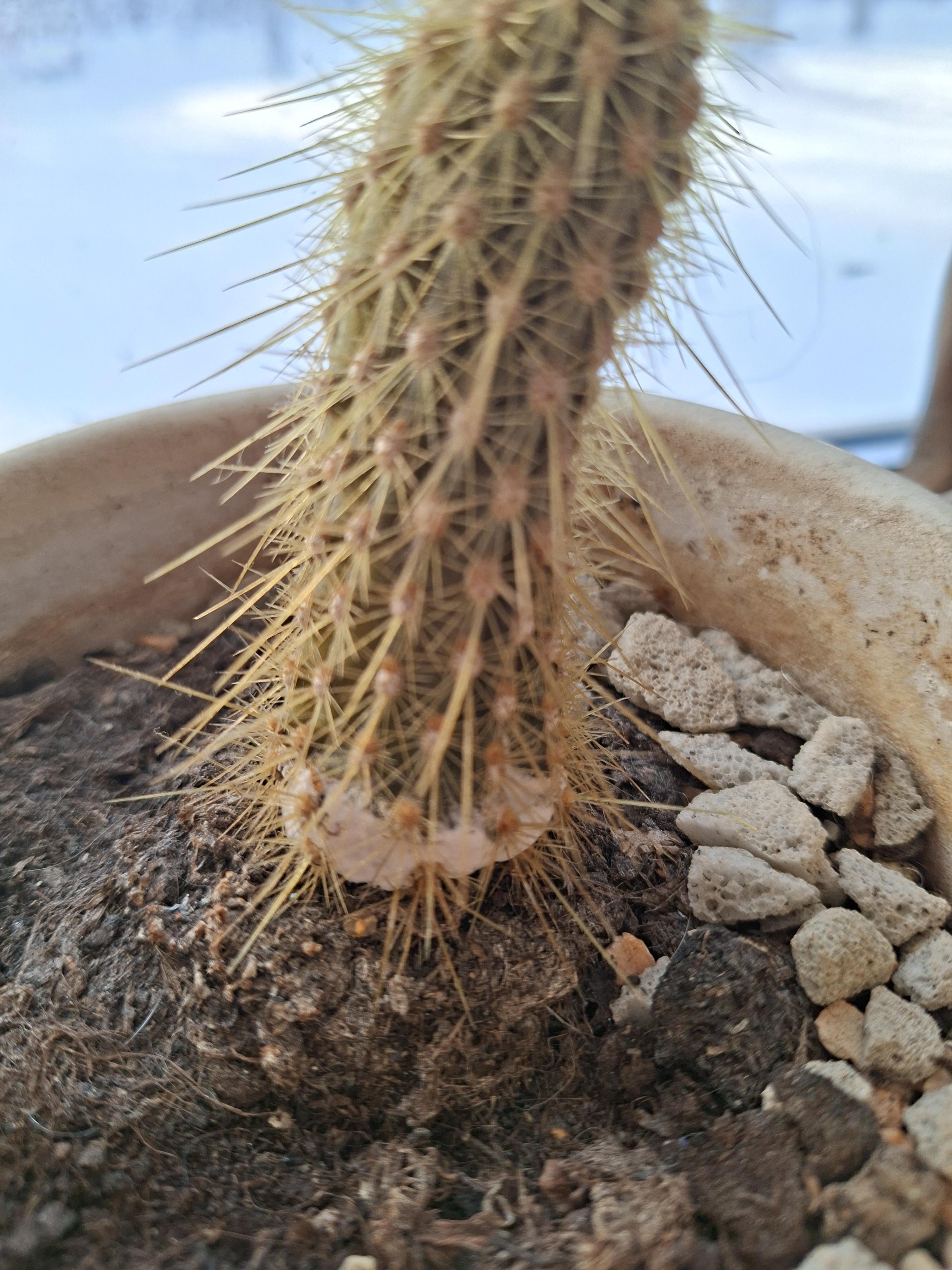 Кажется, корням хана. Может, переукоренить верхушку? Но я не знаю, как укореняется конкретно этот кактус. Да и надо бы понять, почему корни сдохли (плотный грунт? Залили? Замёрз?)