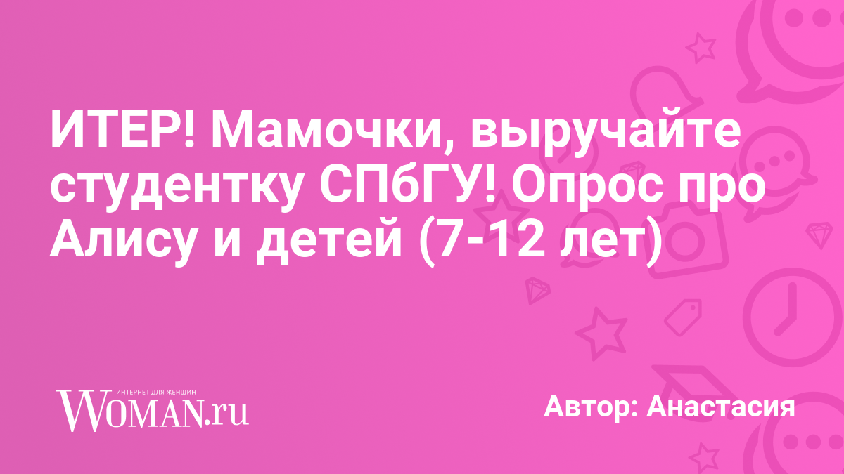 Мамочки, выручайте студентку СПбГУ! Опрос про Алису и детей