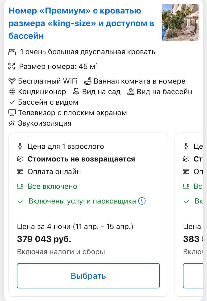 Примерная стоимость номера на 4 ночи