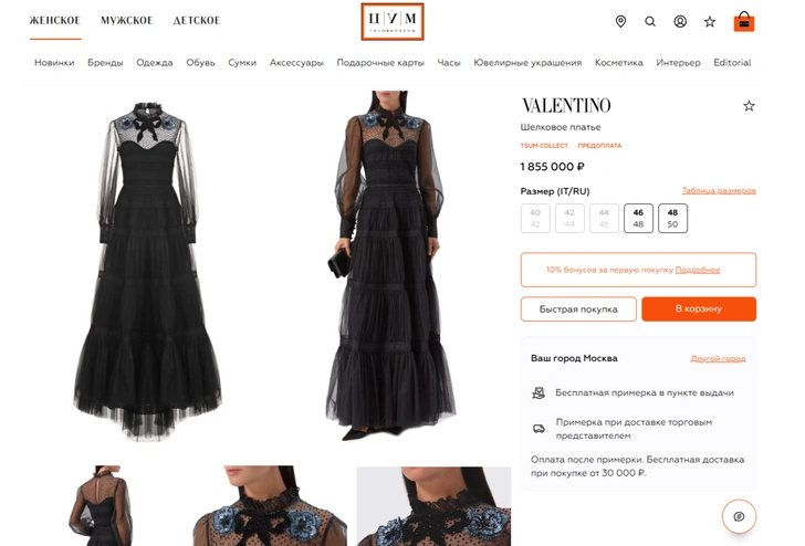 Не для кого не секрет, что Алина Кабаева любит люксовые бренды. Большую часть своего времени она проводит на тренировках в спортивных костюмах, поэтому во время выходов в свет не отказывает себе ни в чем. В 2021 году Кабаева поразила многих, когда появилась на телевидении в красном платье Oscar de la Renta за 253 тысячи рублей, но в этот раз олимпийская чемпионка превзошла саму себя. Для закрытия турнира в Китае она выбрала черное платье Valentino — на сайте ЦУМа оно сейчас стоит 1,8 млн рублей. Подол платья представляет собой многоярусную юбку из полупрозрачного тюля и кружева, а лиф украшают цветы из синего бархата, расшитые пайетками.