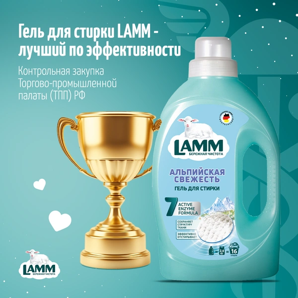 Поэтому по совокупности полученных данных лучшим образцом стал гель для стирки белого белья «Ламм Альпийская свежесть». С чем мы его и поздравляем!