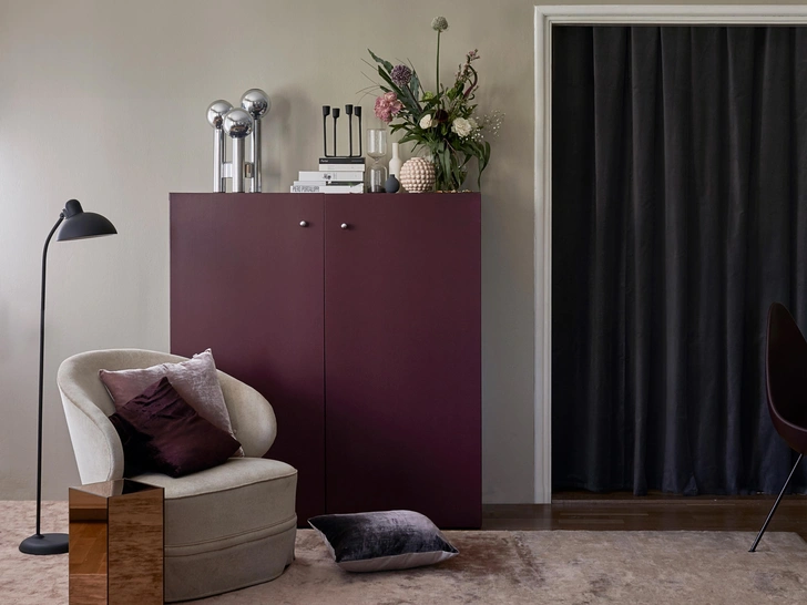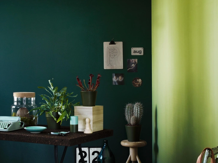 Первое впечатление о помещении самое сильное. Если вы все же остановились на нейтральном цвете стен и белом потолке, то яркие акценты в мебели спасут ситуацию. При этом не обязательно покупать новую мебель, достаточно перекрасить ту, что есть. Яркие стулья, акцентные дверные наличники и плинтусы или двери в цвет стен добавят пространству индивидуальности. Реализовать эту задумку можно с помощью эмали Tikkurila Pesto. Она доступна в разных блесках, от матового до блестящего, и колеруется в тысячи цветов.