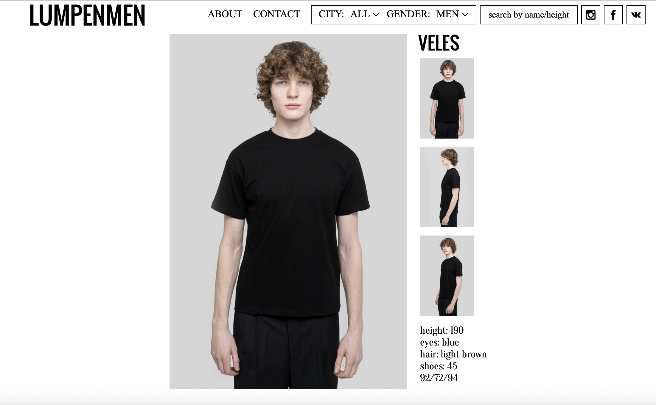 Интересно, что информации о самом Вячеславе, или как он себя называет — VELES, в Сети почти нет. Он не давал интервью, не украшал обложки глянца, и до этого дня о нем в широких кругах действительно не слышали. Его социальные сети выглядят довольно пусто. А по карточке на сайте агентства известно лишь несколько сухих фактов: рост 190 см, параметры 92-72-94, размер обуви 45. Идеальные параметры, голубые глаза, темный блонд, кудрявые волосы, выразительные скулы и четкие черты лица — мечта любого для скаута.