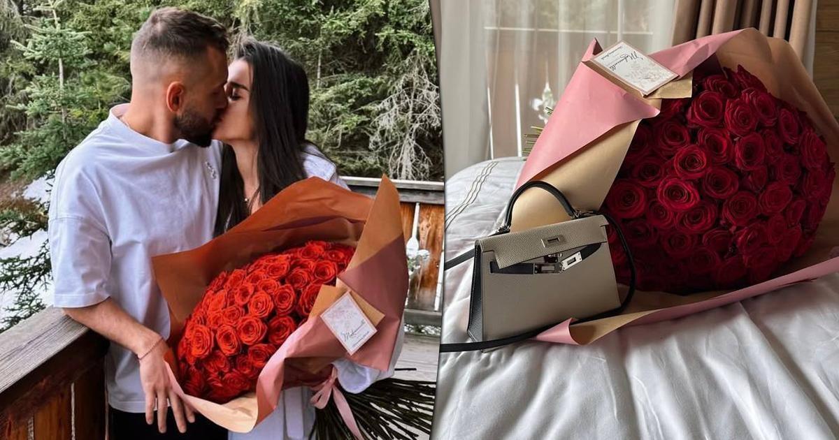Ксения получила шикарный букет красных роз и сумку Kellу от бренда Hermes, стоимость которой составляет более трех миллионов рублей.