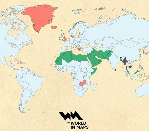 На первый взгляд кажется, что перед вами самая обычная карта мира. Но если присмотреться, то можно заметить: страны выделены цветом не случайно. Каждая из них объединена одной важной особенностью — той, что напрямую связана с культурой, традициями и даже законами.