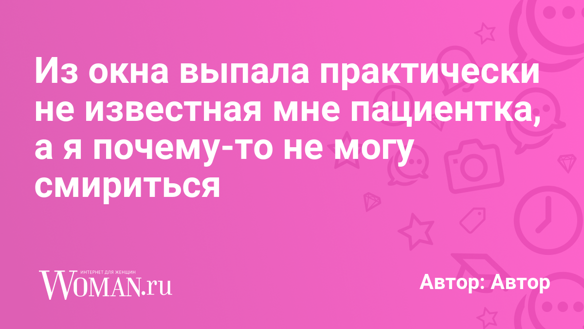 В нашем реанимационном отделении раздаётся тревожный звонок дежурного телефона. Из окна 6 этажа выпала пациентка. Как и почему выпала, разбираться времени нет — вместе с заведующим и двумя сёстрами хватаем рюкзак, печатки, бинты и бежим в указанное место. На земле под окнами главного корпуса лежит окровавленное женское тело в больничной рубашке. Вокруг столпились ещё сотрудники и студенты, молоденькая медсестра уже проводит массаж сердца. Подбегаем мы, сменяю девочку, начинаю сам качать. Выполняем внутрикостный доступ, адреналин, вливания. Подъезжает бригада скорой с оборудованием, подключаем электроды шокера, устанавливаем аппарат массажа сердца. На каталке перевозим пострадавшую в шоковую приёмную. Вливаем кровь, реанимируем. Реанимируем… Прошло 30 минут… Всё… Ушла