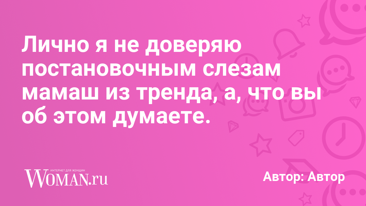 Лично я не доверяю постановочным слезам мамаш из тренда, а, что вы об этом думаете