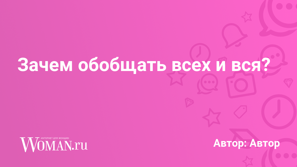 Обобщение — это детская позиция. Когда кто-то орет "да все бабы/мужики козлы" — это маленький внутренний ребёночек человека обиделся и топает ножкой. Увы, пока человек не включит разум, с детем договорится сложно.