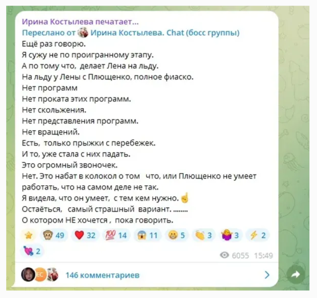 В связи с этой историей многие начали вспоминать, что с особой жестокостью Ирина Костылева писала о дочери еще несколько лет назад. Когда Лена только начинала разучивать четверные прыжки, она часто неудачно падала, из-за чего у нее болели ноги и она «выла как собака». Успокаивала ее не мать, которая в это время присутствовала на катке, а тренер.