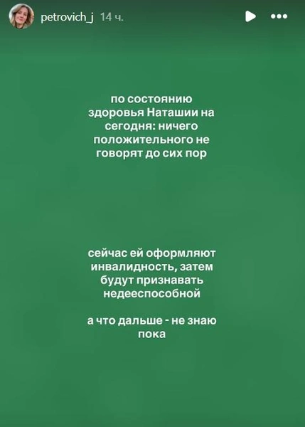 «Сейчас ей оформляют инвалидность, затем будут признавать недееспособной», — делится новостями блогер Юлия Демина.