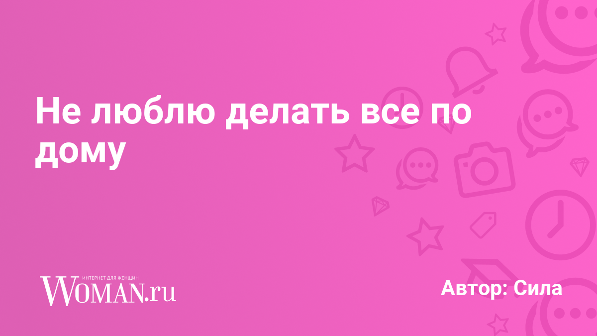 Не люблю убирать, стирать, готовить, делать все по дому и т.д. Просто не люблю. Абсолютно. Скучно, отнимает много времени, не интересно, хочется чем-то другим заняться. Я предпочитаю делать что-то интересное и полезное, а не заниматься каким-то монотонным и нудным. За меня это делает как обычно муж. Он делает всё за меня. Правда, иногда он упрекает меня и просит помочь по дому. Но мне это не нравится, поэтому я всё-таки предпочитаю, чтобы он всё делал сам. Я ему компенсирую его труд другими способами.