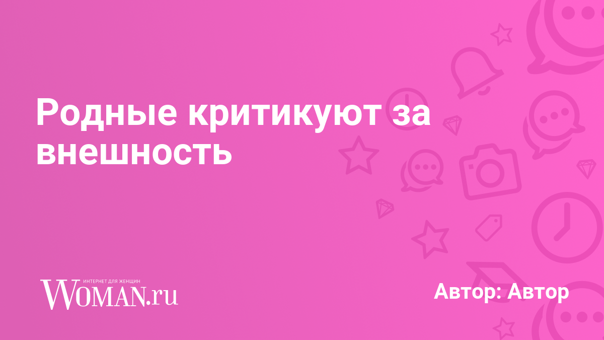 родственники, особенно бабушка, постоянно критикует меня за внешность. Не за одежду, но и это не обошло стороной, а именно за внешность данную мне генетически. То нос большой, то щеки отъела, то глаза узкие, волос мало, не тот цвет волос, не та длина, не та прическа. И так каждый раз при встрече. Ни разу не услышана что-то положительного по этим аспектам. Отношения у нас в семье у всех замечательные. Ранишь и мама критиковала меня, но уже с 26 лет я очень резко ответила, что не нужно меня критиковать за то, какая я есть, я такой родилась, с этими глазами, носом и тд. И изменить что-то в своих чертах лица не в силах и принимаю себя такой как есть. Я уже смирилась и меня все устраивает. Да, каждый раз слыша эти комментарии мне не приятно, о чем я говорю вслух, но это не исчезает. Лично я не считаю себя уж прям каким-то уродом, у меня обычная внешность. Но уверенности особой нет, хоть я и не даю себя в обиду и резко отвечаю, внутри мне все равно обидно все это слышать. Однажды бабушка сказала, при мне и маме «в кого она у нас такая? Все как с картинки». И я запомнила это навсегда, мне хотелось заплакать, но я просто рассмеялась и сделала вид что просто не придаю этим фразам никакого значения. И это правда. Все родные как с картинки, очень красивые. И в молодости были и сейчас в возврате. У меня к ним нет никакого негатива, или претензии. Я просто хочу понять почему они все это мне говорят, неужели они на самом деле считают что это только сделает меня лучше? Что я попью каких-то пилюль и мой все уйдет, или покапал капель на волосы и у меня шевелюра с конский волос вырастет? Поделаю массаж лица и щеки исчезнут? Я объясняю что это не исправляется вот так и не будет такого результата как с картинки, мне говорят - не пробовала. Как раз таки и пробовала и знаю что ничего не помогает. И я не хочу жить и страдать из-за того что я вот такая страшная как меня видят, потому что я этого в зеркале не вижу. Свекровь бывшая говорила «как так он на тебе женился, все девушки такие красивые у него были». С ней я не общалась, я с первых минут знакомства поняла что я ей не понравилась, это было в далеком 2013 году. Неужели я и вправду так ужасно выгляжу.. я задаю себе эти вопросы каждый день, но не унываю. Меня так и продолжают унижать за то что я такая родилась))) из наилучших побуждений!