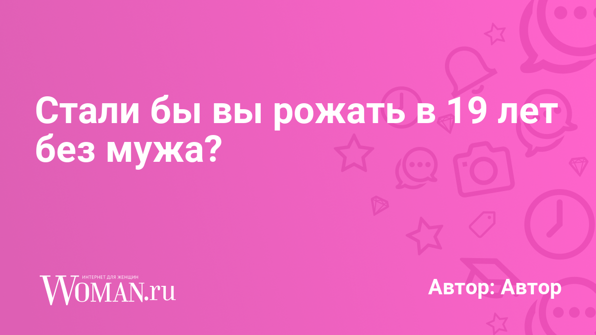 Ну все-таки женщины в любом возрасте рожают, потому что в первую очередь они этого хотят в данный момент - хотят родить и стать матерью, и имеют для этого возможности. А не потому, что муж хочет или не хочет, родители хотят или не хотят, посторонние люди с форума хотят или не хотят и так далее. Бывает, конечно, когда они поддаются чужому давлению, забив на свои желания, но это уже клиника. Девушка сама хочет рожать? Хочет в 19 лет вместо учебы сидеть с младенцем? Она к этому готова психологически и материально? Готова ли она в принципе жить с клеймом “мать-одиночка” (это все же очень неприятная ситуация)? Я точно не хотела бы стать матерью-одиночкой в 19 лет, у меня не было для этого никаких материальных условий - денег, жилья, работы, возможности учиться, пока ребенком кто-то занимается вместо меня.