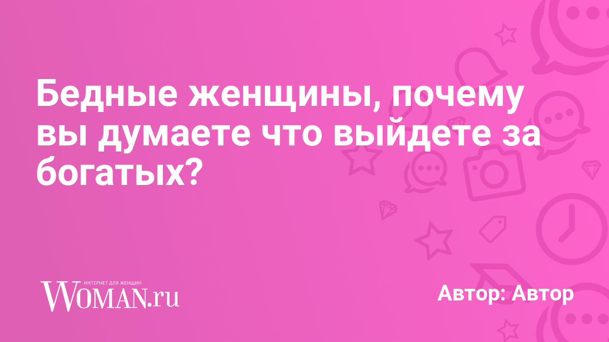 Если что я сама женщина, а не "обиженный мужик которому не дают", так что давайте без агрессии. Что такого может быть в женщине бедной чего нет в его ровне, богатой? Внешность у богатых обычно лучше - есть деньги на диетологов, стоматологов, косметологов, и т.д.
